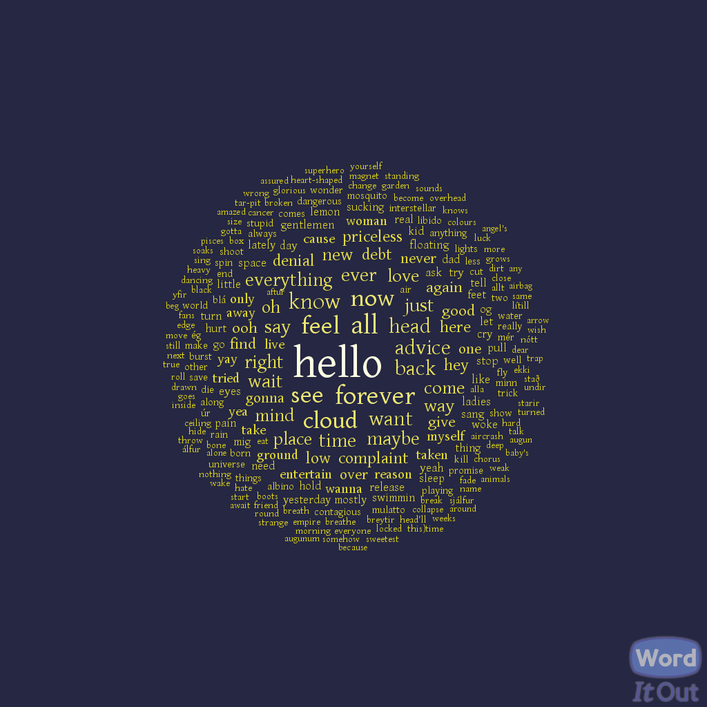 Wordcloud: Alternative 2: Nirvana through Radiohead (1989-2000)